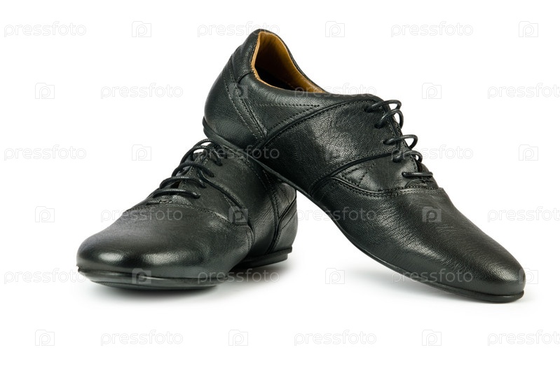Черные мужские туфли на белом фоне