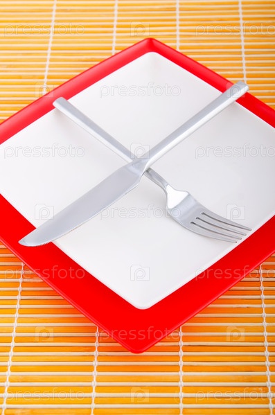 Тарелки, вилка и нож крупным планом