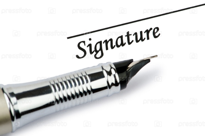 Место для подписи и ручка на белом фоне