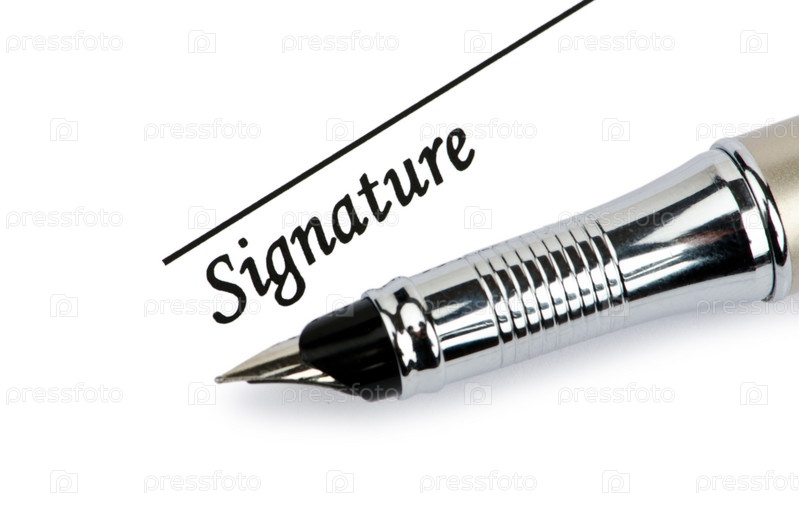 Место для подписи и ручка на белом фоне