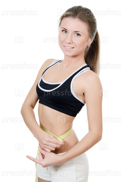 Портрет девушки с сантиметровой лентой на белом фоне