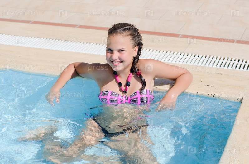 Счастливая девочка в бассейне