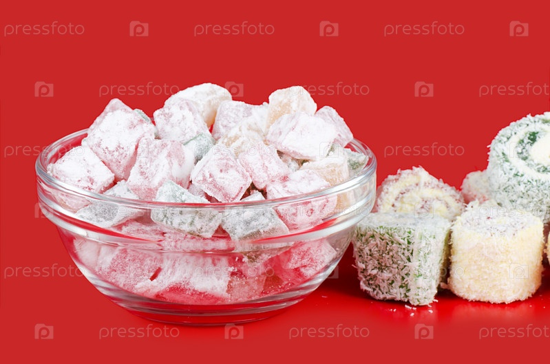 Рахат-лукум на красном фоне