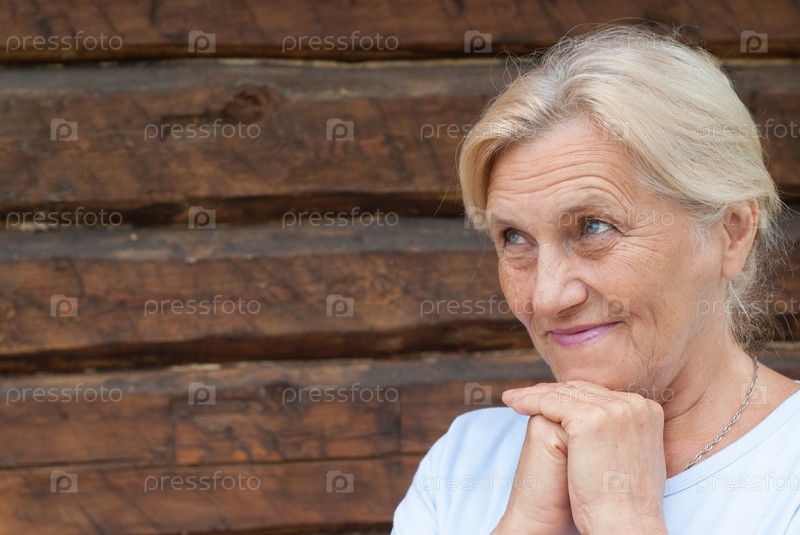 Портрет пожилой женщины на фоне деревянной стены