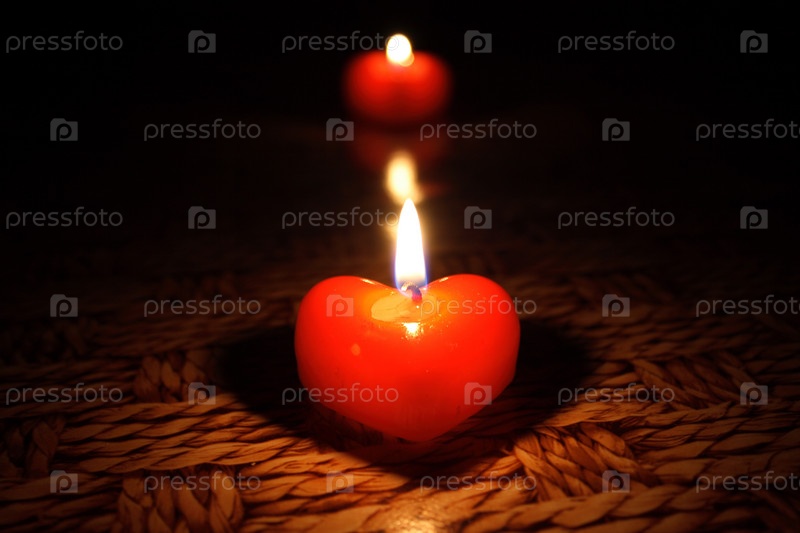 Две зажженные свечи в форме сердца