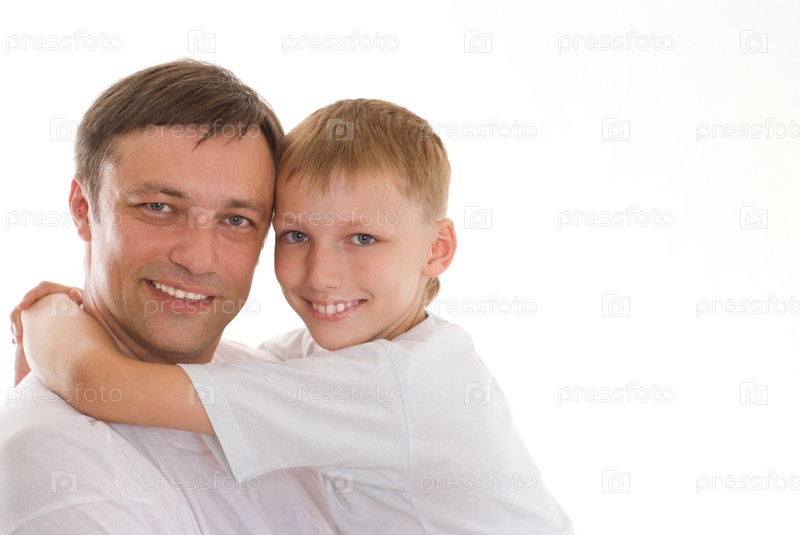 Отец с сыном на белом фоне