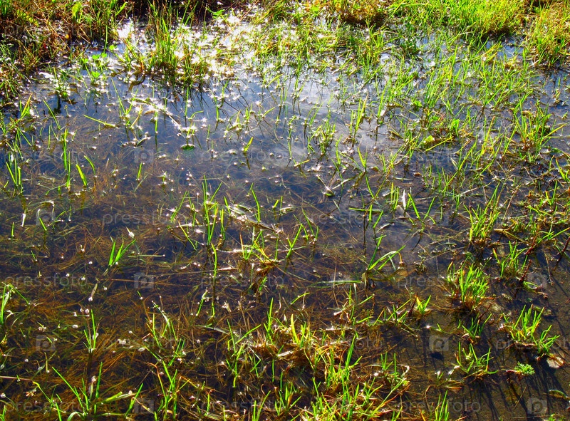 Зеленая трава, растущая в луже