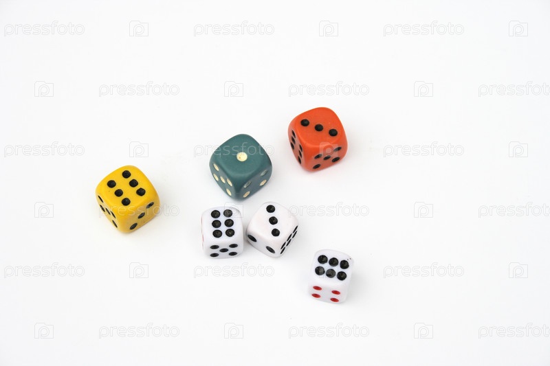 Игровые кости разных цветов на белом фоне