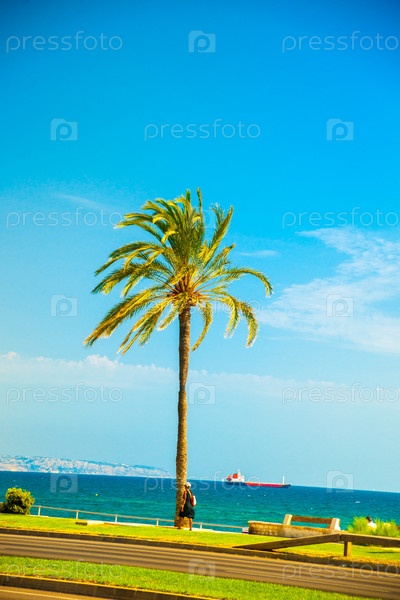 Пальмовые деревья вдоль побережья в Пальма-де-Майорка
