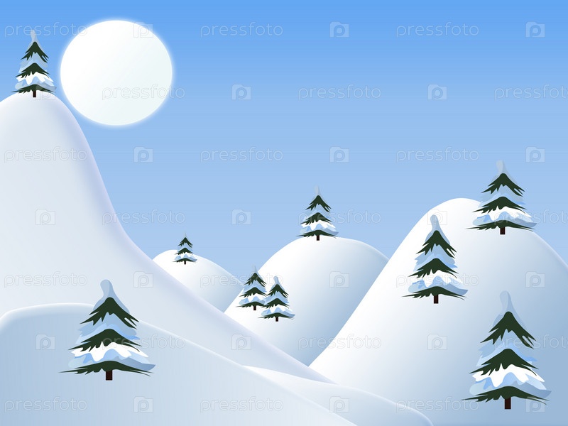 Иллюстрация со сценой зимы и деревом в снегу