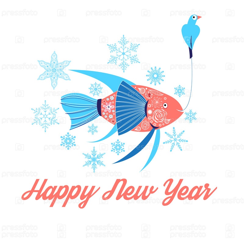 Рыба и птица Новогодний фон