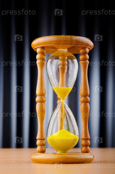 Песочные часы на столе крупным планом