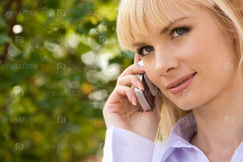 Портрет красивой девушки, разговаривающей на своем мобильном телефоне на открытом воздухе