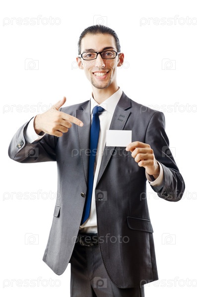 Бизнесмен показывает пустую визитку