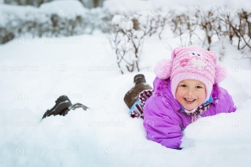 Веселая девочка, играя с снега зимой снежный парк, Красное село, Санкт-Петербург, Россия
