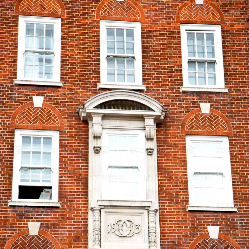 В Европе Лондон старого красного кирпича стены и исторические окна