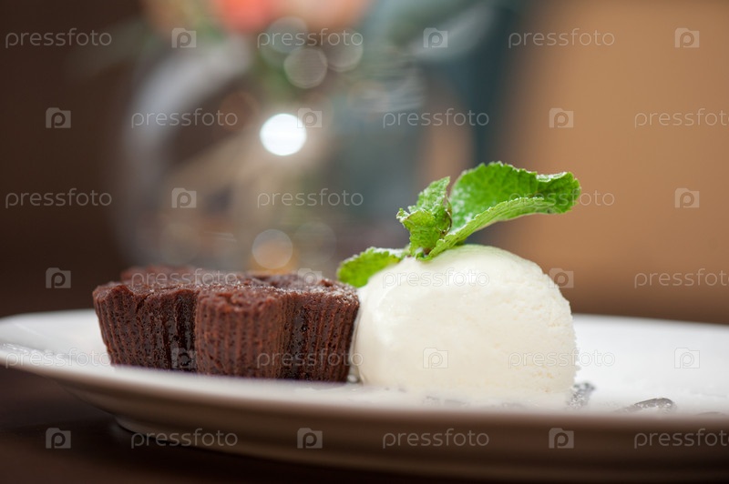 Шоколадное пирожное с шариком мороженого