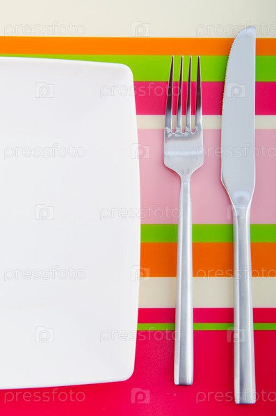 Тарелка и столовые приборы на столе