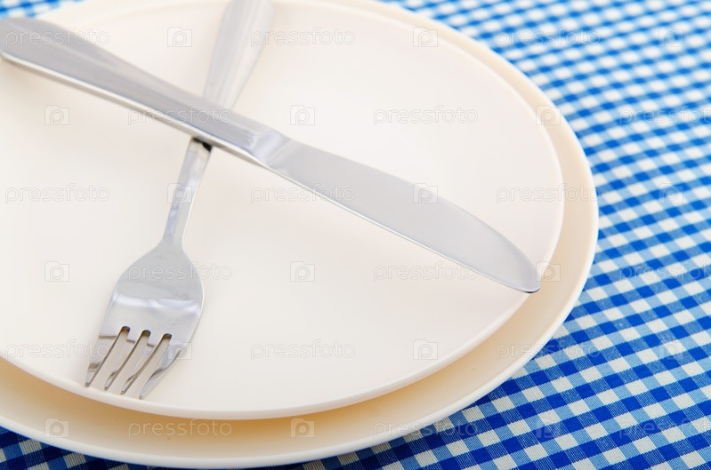 Тарелка и столовые приборы на столе