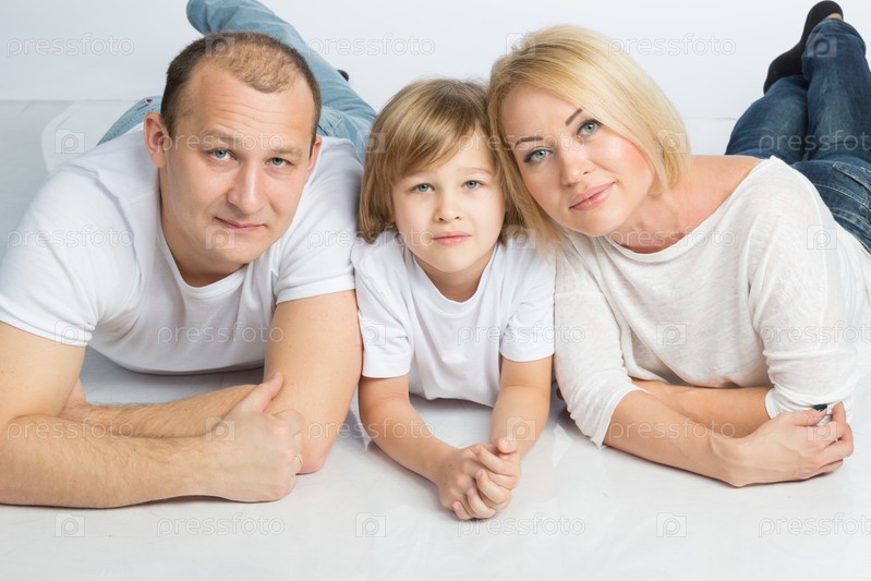 Счастливая семья на белом фоне
