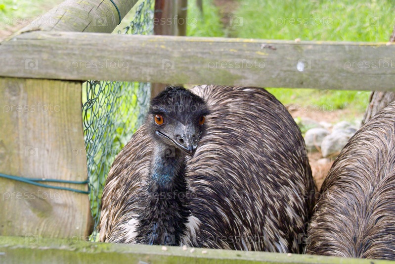 Страус эму у изгороди в парке