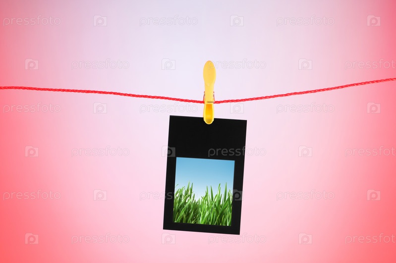 Трава на фотографии, висящей на веревке