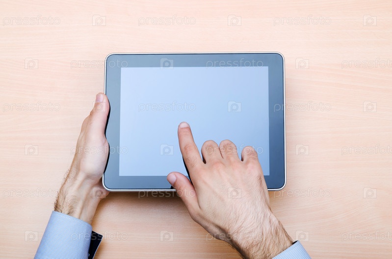 Человек работает на планшетном компьютере