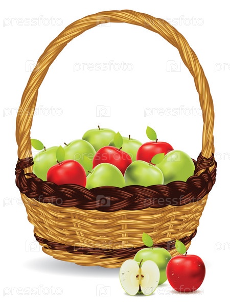 Корзина красных и зеленых яблок