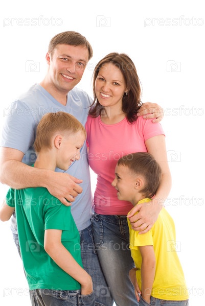 Портрет счастливой семьи на белом фоне