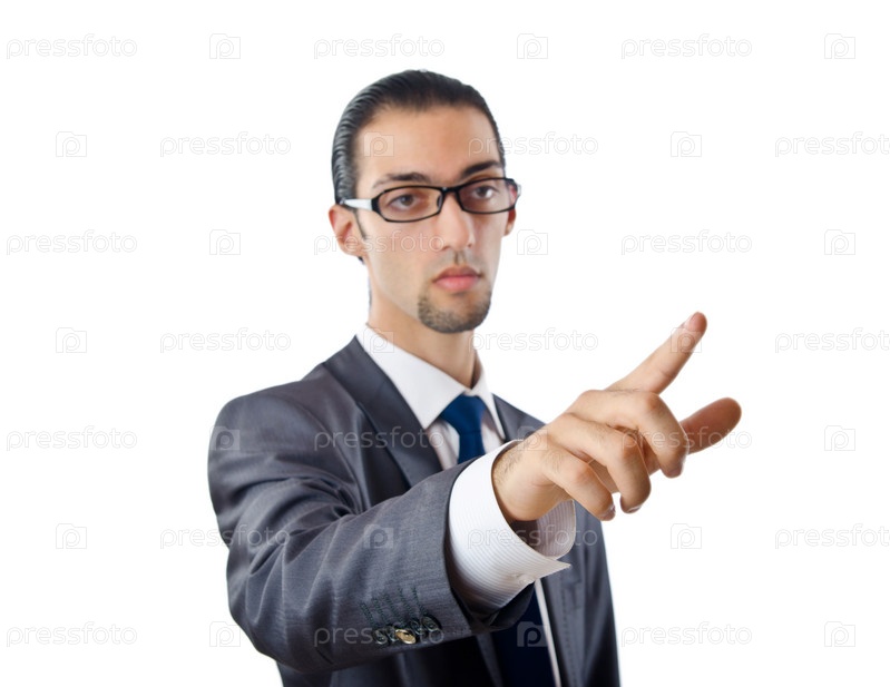 Молодой бизнесмен нажимает на воображаемую кнопку