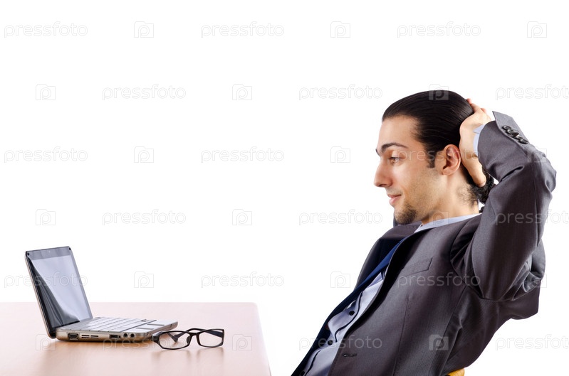 Бизнесмен работает на ноутбуке