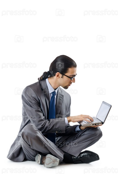 Бизнесмен работает на ноутбуке