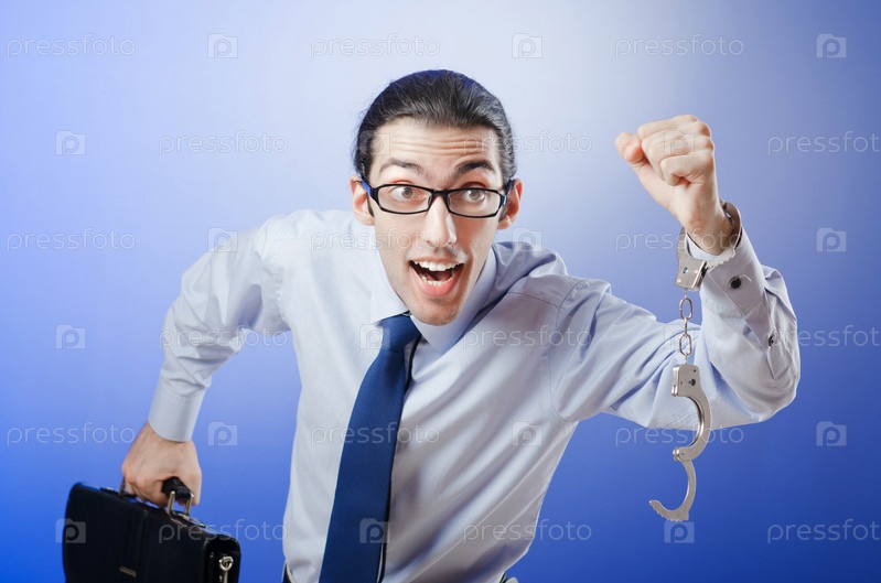 Бегущий бизнесмен в расстегнутых наручиниках