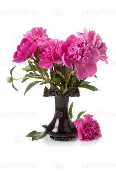 Пионы в вазе на белом фоне