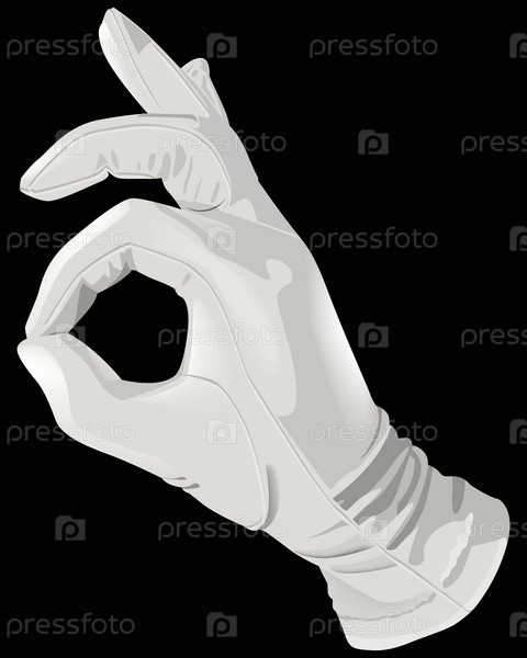 Рука в перчатке показывает знак, на черном фоне