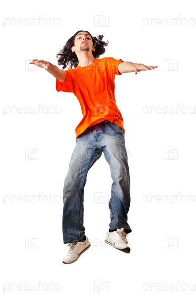 Танцующий мужчина на белом фоне