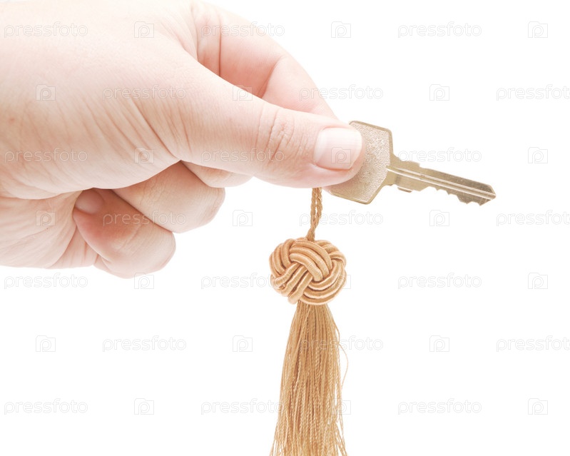 Рука с ключом от двери на белом фоне