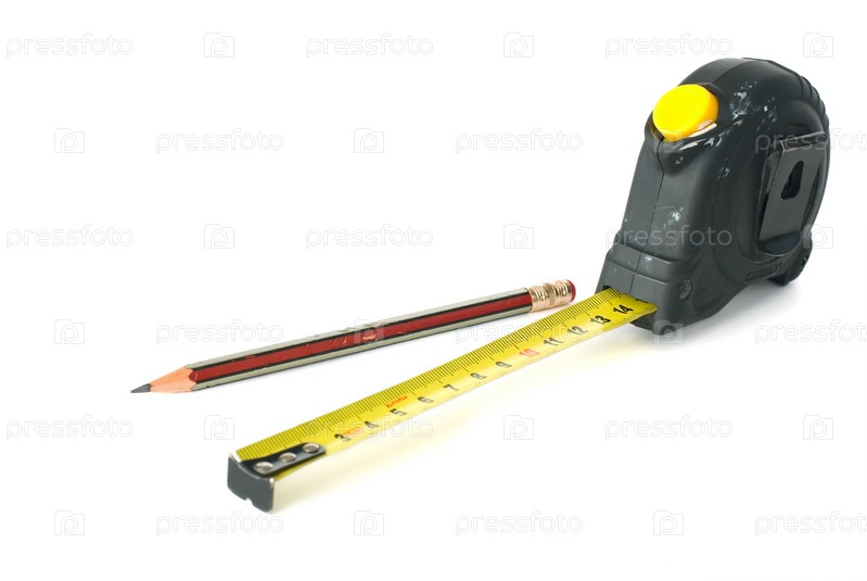 Измерительная лента и карандаш на белом фоне