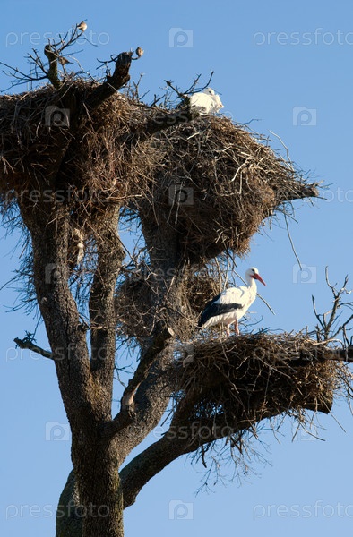 Аисты в гнездах на дереве