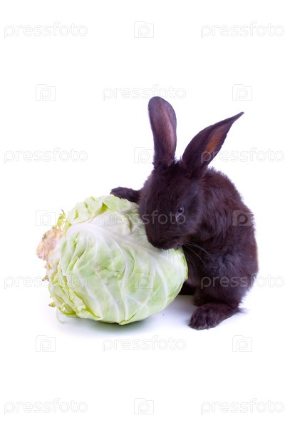 Кролик с капустой на белом фоне