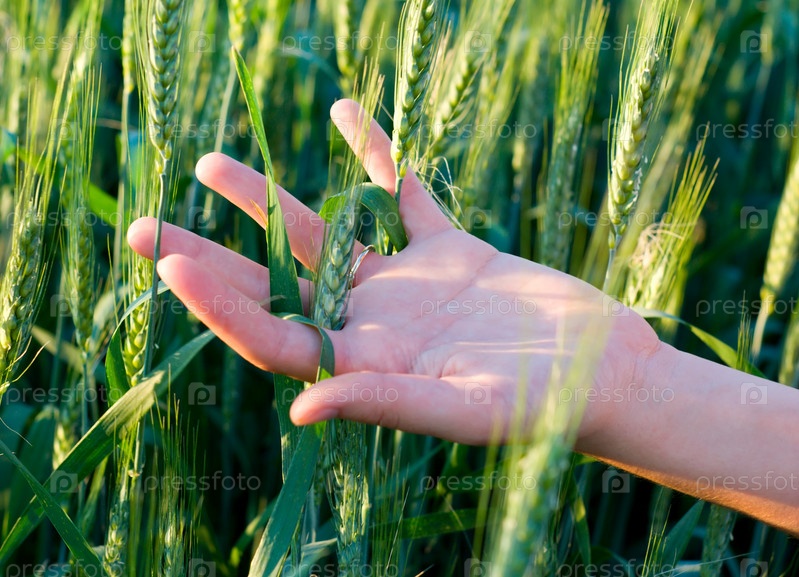 Рука у зеленых колосьев