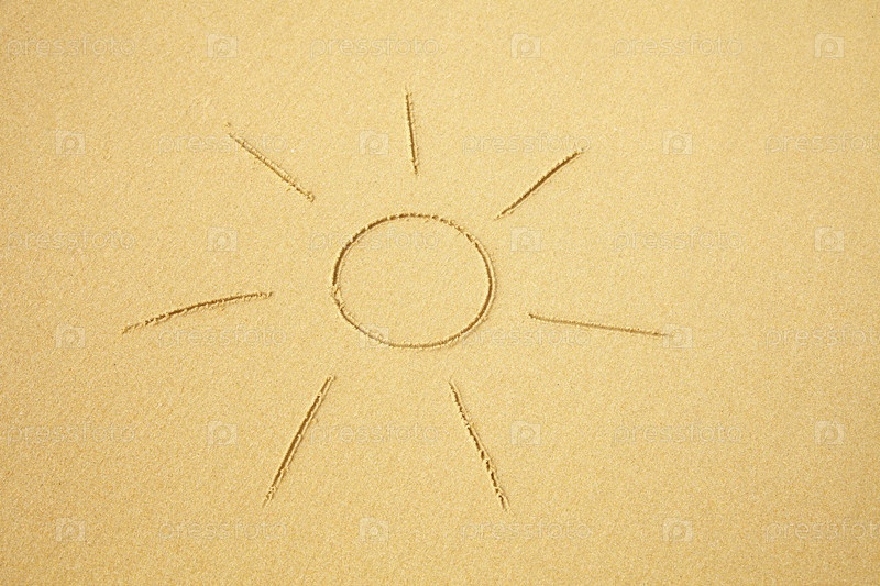 Солнце, нарисованное на песке пляжа