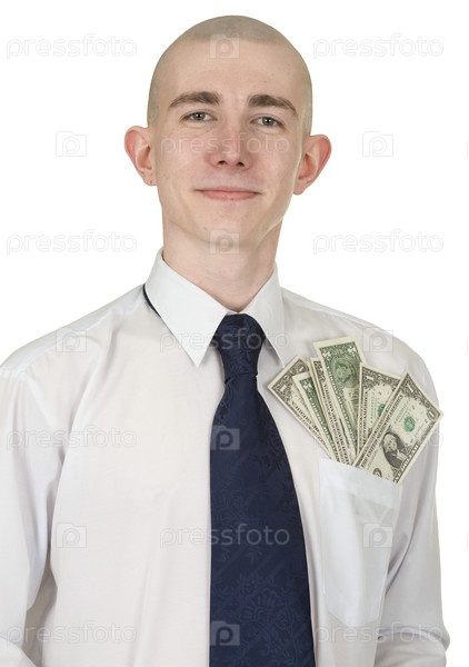 Мужчина в белой рубашке с деньгами в кармане
