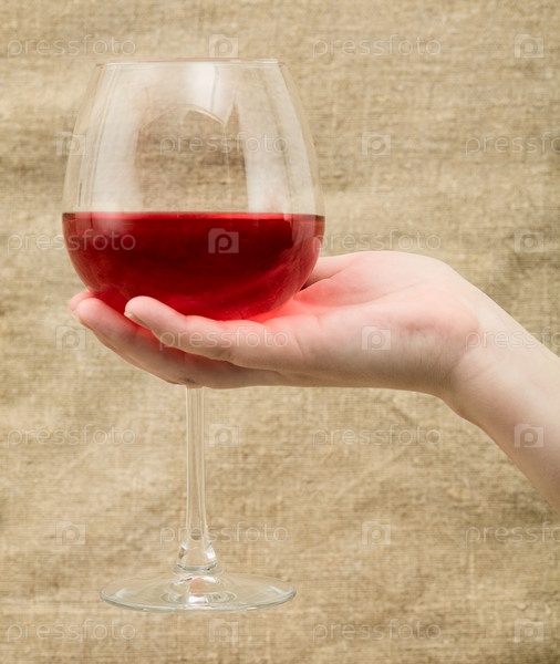 Винный стакан с вином на женской руке на холсте