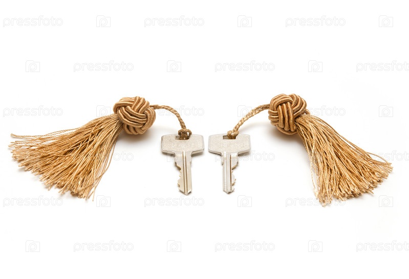Два ключа с брелками-кисточками, изолированные на белом фоне