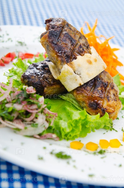 Мясная кухня: кебаб на тарелке