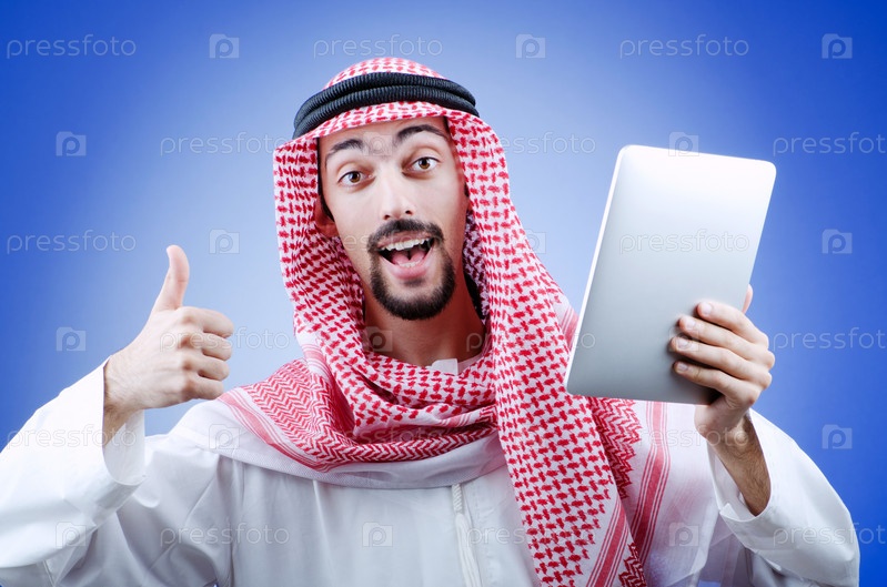 Молодой араб с планшетным компьютером