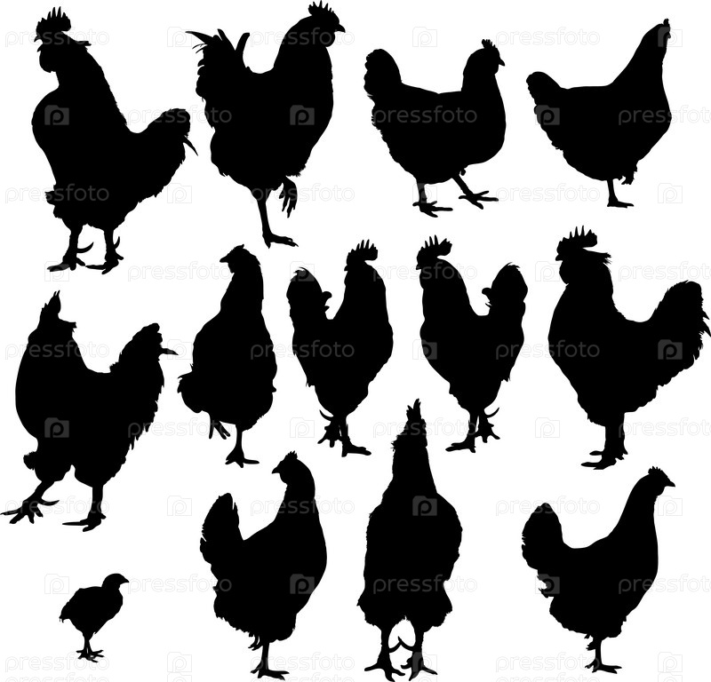 Черные куры, изолированные на белом фоне