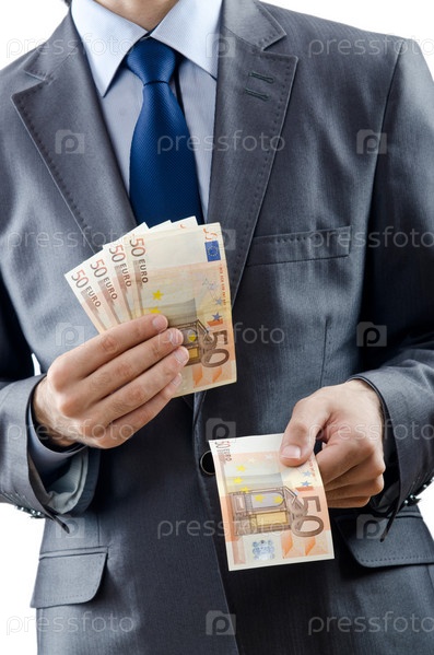 Мужчина с банкнотами евро