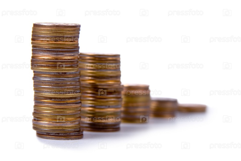 Столбики из монет на белом фоне